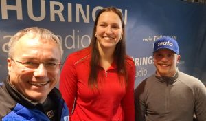 Die besten Werbebotschafter sind aber unsere Sportlerinnen und Sportler und deshalb war ich gestern ausgesprochen gerne mit Merle Fräbel und Paul Gubitz beim MDR im Landesfunkhaus zu Gast. Merle und Paul haben in der Sendung Ramm am Nachmittag mit dem Moderator Marko Ramm über ihre Sportlaufbahn und die Erwartungen an das Weltcup-Wochenende in Oberhof gesprochen.