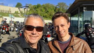 Für mich war es auch ein Jubiläum. Seit nunmehr 20 Jahren bin ich fast jedes Mal dabei gewesen. Meist mit einem meiner drei Söhne und immer abwechselnd mit der Honda und der Ducati. Dieses Jahr ging es mit Jonas auf der Ducati auf Tour und es ging ins Bratwurstmuseum nach Mühlhausen. Zuvor stand aber die traditionelle Bikerandacht auf dem Domplatz an.