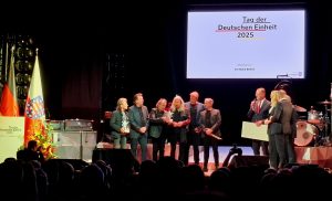 Beim Festkonzert unter dem Titel “Über sieben Brücken musst du geht” ging es tatsächlich um das legendäre Lied von Karat und Peter Maffay. 1978 feierte Karat damit große Erfolge und zwei Jahre später entstand die Coverversion von Peter Maffay. Der feierte damit im Westen so große Erfolge, dass tatsächlich zur Wendezeit ein Musikredakteur der Bravo gefragt haben soll, warum er Karat erlaubt habe, sein Lied zu covern. Wie auch immer es war. Heute Abend standen Karat und Peter Maffay zusammen auf der Bühne und wurden beide von Ministerpräsident Mario Voigt mit dem Thüringer Löwen geehrt.