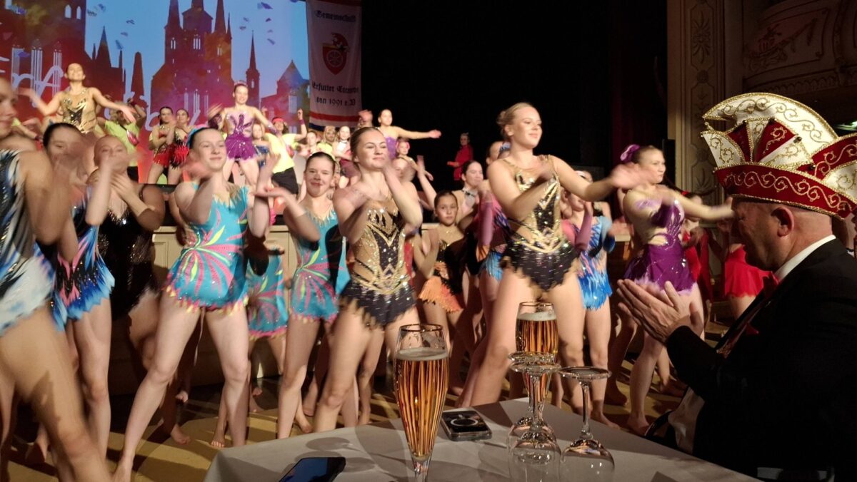 Aber am Abend ging es gleich weiter. Die Prunksitzung der GEC im Kaisersaal war restlos ausverkauft. In der GEC sind 14 der Erfurter Karnevalsvereine. Unser MKC allerdings ist nicht Mitglied der GEC. Dennoch habe ich natürlich mit Kappe und unseren Karnevalsinsignien die Marbacher Fahne “hochgehalten”. Prominentester Gast war, neben den vielen Politikvertretern, Wolfgang Lippert. Er wurde mit dem Ehren-Till der Funke-Mediengruppe geehrt. Auf der Bühne sorgte er dann auch noch für Stimmung. “Erna” ist gekommen und er hatte auch “Es geht schon wieder los” im Gepäck.