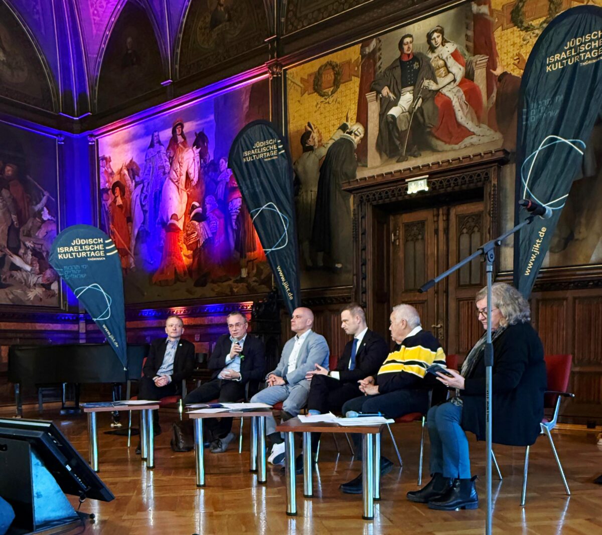 Die 34. Jüdisch-Israelischen Kulturtage Thüringen finden vom 5. bis 26. März 2026 mit 80 Veranstaltungen an 16 Orten in ganz Thüringen statt. Heute haben wir gemeinsam mit dem Vorsitzenden der Jüdischen Landesgemeinde Prof. Reinhard Schramm, dem Chef der Staatskanzlei Stefan Gruhner und Oberbürgermeister Andreas Horn das Programm in einer Pressekonferenz vogestellt. Die Vorsitzende unseres Fördervereins Dorothea Marx und der Festivalleiter haben sowohl zum Festival berichtet als auch in Gesprächsrunden mit den Podiumsgästen die besondere Bedeutung heraus gestellt.